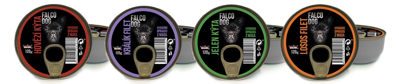 FALCO DOG, kaip ir MAX, konservų linijos konservai yra aukščiausios kokybės ir užpildomi rankomis kruopščiai atrinktais raumeninio audinio gabaliukais. Šiuos produktus ypatingai vertina mažų veislių augintinių šeimininkai, o taip pat tai geriausias pasirinkimas jauniems šuniukams ir kačiukams.